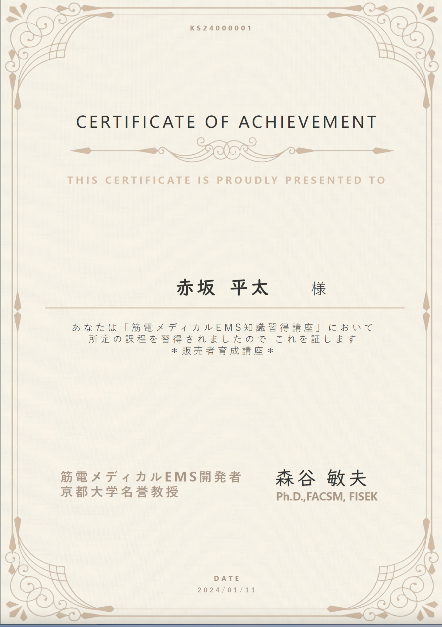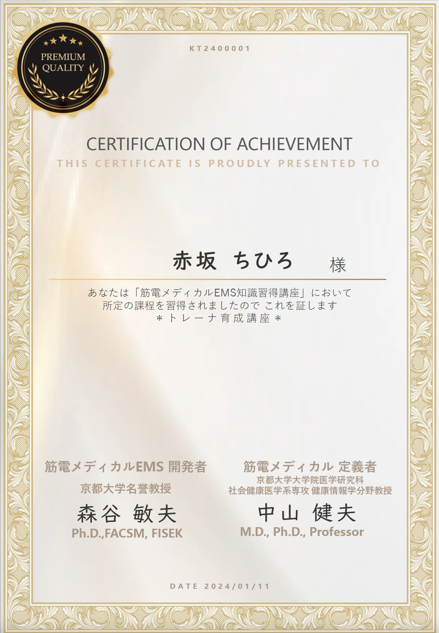 【認定証】「My Med EMS」トレーナ認定証の発行
